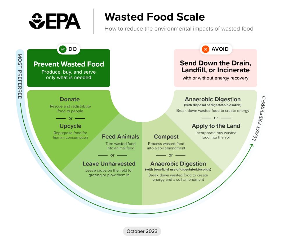 - The EPA’s top suggestion for keeping food waste out of landfills is preventing waste in the first place