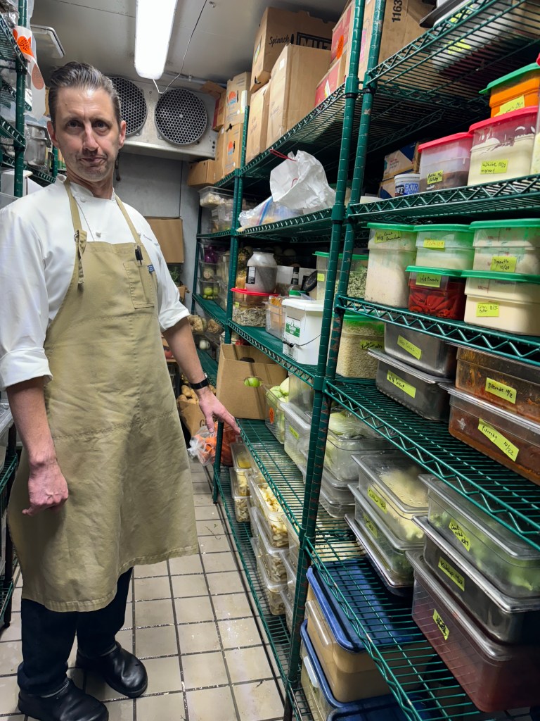 But that’s not the end of The Chastain’s food waste tricks… On a counter at the outer edge of the kitchen is a small buffet. It’s set up twice a day to feed the staff – a delicious perk for employees, made with food from the kitchen that might otherwise go to waste. Grossman also sees it as a valuable training opportunity for aspiring chefs.