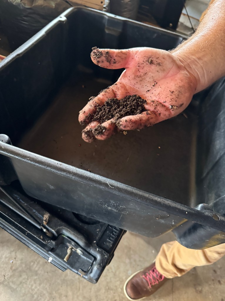 Now you have usable compost for your garden and worms ready to work on your next batch. Each time you start a new bin, make sure your worms have a healthy two-thirds browns to one-third greens ratio and that the moisture level is similar to a moist (but not dripping) sponge. Successful composting is really about habitat management for your worms. So keep the worms happy and fed, and they will reward you with good compost!